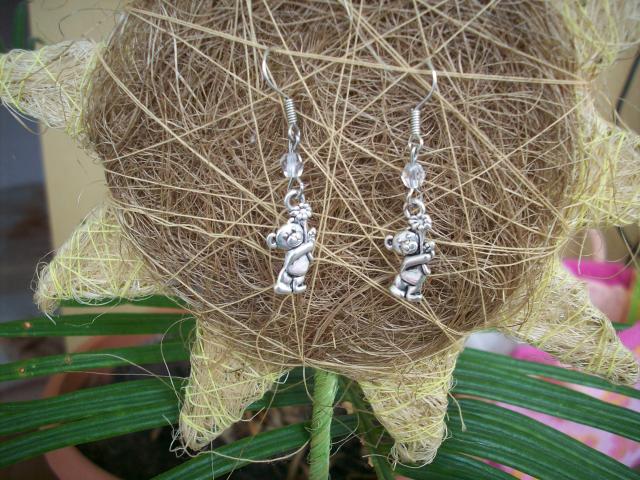 Labai mieli ir vaikiški auskariukai :) Auskariukų ilgis 4,4cm. Virš meškiuko yra kristaliukas baltas.