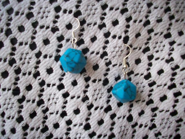 Mėlynos spalvos su juodais vingiaias akmenukas. Auskaro ilgis 3,7cm.