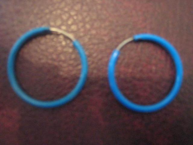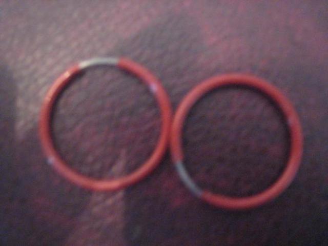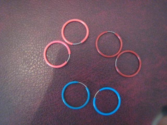 3 auskaru poros, raudoni- nenesioti, melyni ir rausvi po 1 karta.
