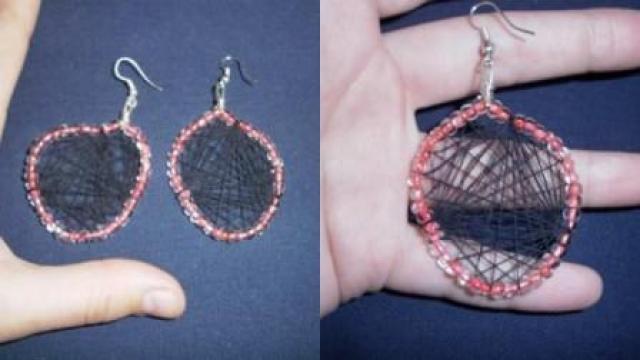 nešioti, bižuteriniai auskarai,namų gamybos su įdomiu siūlu raštu, be pažeidimų