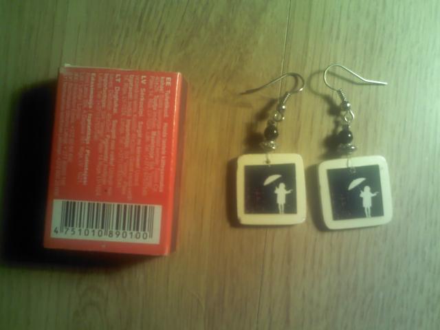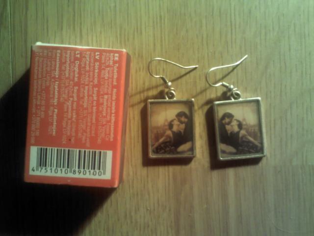 auskarai. degtukų dėžutė šalia, kad matytusi koks dydis ;) kainos 15-20lt
