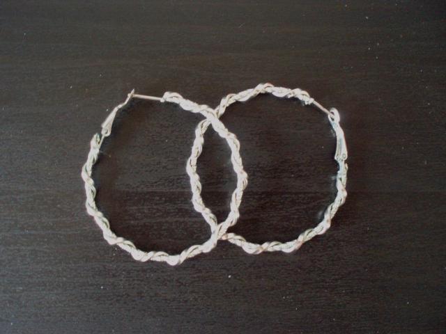 Bižuteriniai auskarai, netikras sidabras, truputį juoduoja po ilgo laiko. Auskaro žiedo skersmuo apie 4cm. Kaina 10 Lt arba sutartinė :) tel.: 860488400