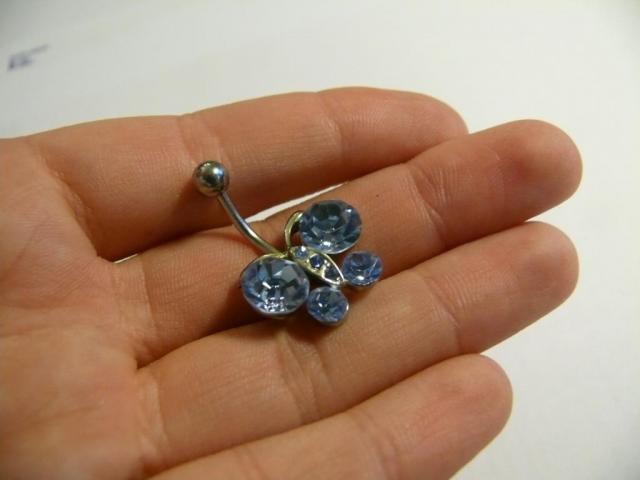 nedevėtas gražus auskaras į bambą su melsvom akutėm.