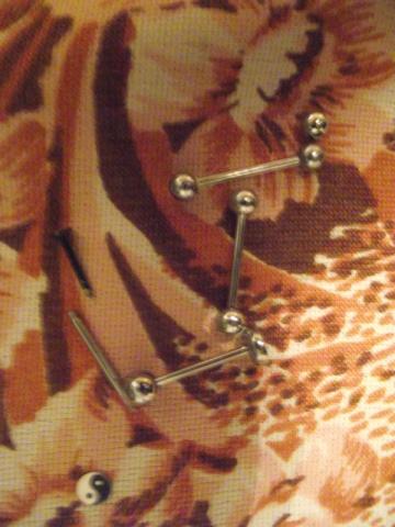 Daug metų nešiojau burnoj auskariuką, ne vieną rutuliuką, atsisukusį naktį miegodama nurijau, ir va liko visokie tokie dalykai. Vienas yra tikrai visas, galima susisukti dar vieną visą vertį :) Čia turbūt tas medicininis metalas, galima ilgai nešiot.