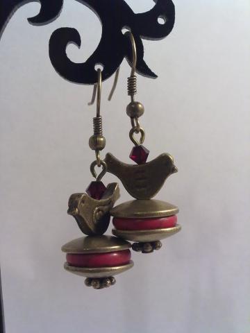 Mieli auskariukai su swarovski kristalais ir magnezitu (sint) bei sendinto žalvario sp detalėm