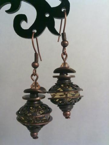 Mieli auskariukai su swarovski kristalais ir stiklinėm rondelėm bei sendinto vario sp detalėm