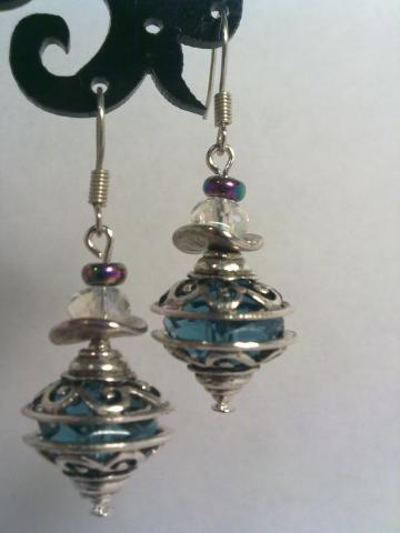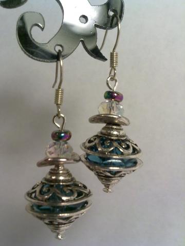 Mieli auskariukai su stiklinėm rondelėm bei sendinto sidabro sp detalėm