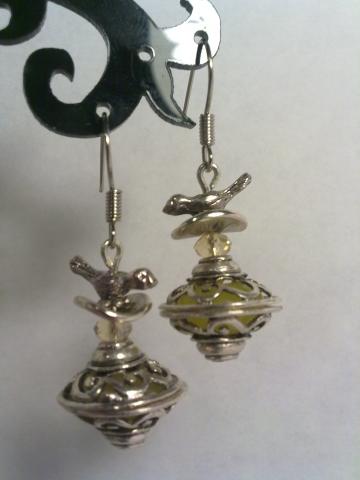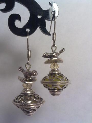 Mieli auskariukai su stiklinėm rondelėm ir geltonos spalvos žadeitu bei sendinto sidabro sp detalėm