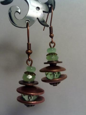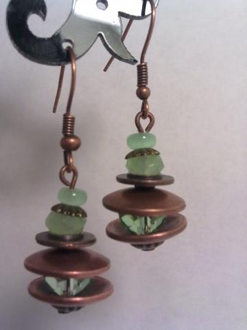 Mieli auskariukai su stiklinėm rondelėm bei sendinto vario sp detalėm