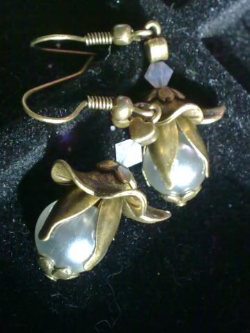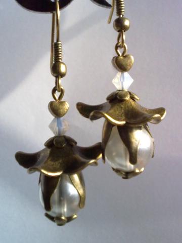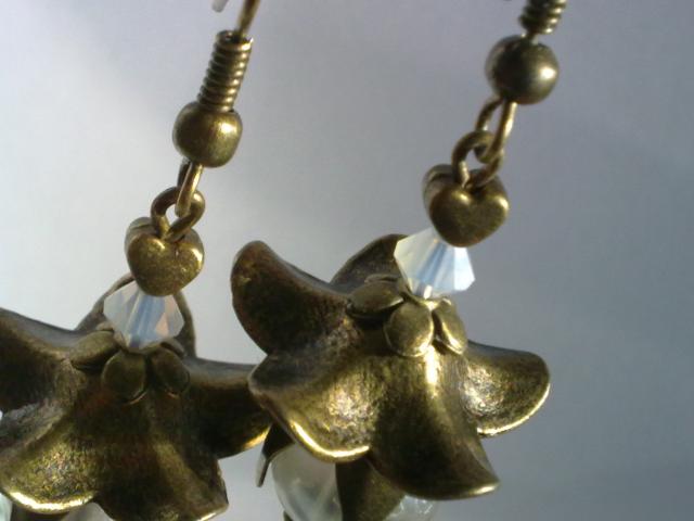 Stiklo perlai ir swarovski kristalai, seninto žalvario detalės