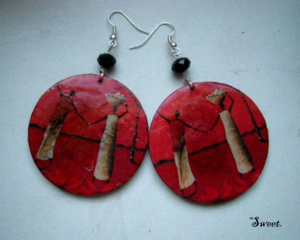 Auskarai dekoruoti dekupažo technika,formą ir dydį galima pasirinkti
