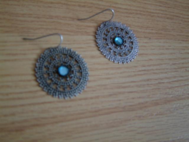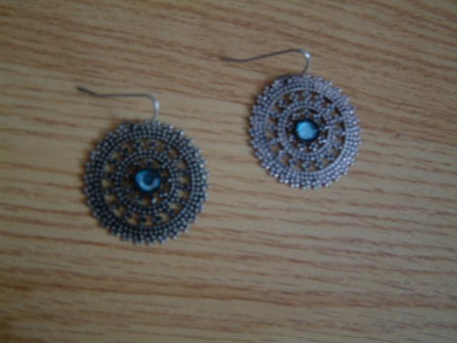 apvalus auskariukai su melyna akute viduryje. skersmuo apie 3 cm. parvezti is Anglijos