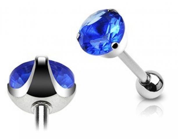 Visiškai naujas, nerūdijančio plieno auskariukas į liežuvį, mėlynos spalvos.