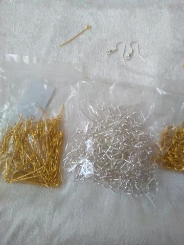 ISPARDAVIMAS!!!! Pigiau nei PARDUOTUVEJE!!! Auskariuku ir apyrankiu,karoliu gamybai parduodamos detales: vinukai su kilpute -3,2cm ilgio,uzsegimai 2rusiu-uzsegami-aukso sp-1,2cm.,uzsukami-sidabro sp-1,4cm. ilgio.Auskaru uzsegimo detales sidabro spalvos virs 50 vnt. Klauskite :)