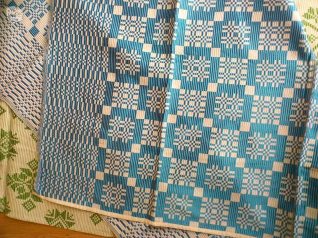Rankų darbo austa lovatiesė. Yra vienspalvių ir spalvotų. Tiks papuošti kaimiško stiliaus interjerą. Kai kurių yra po 2 vnt.