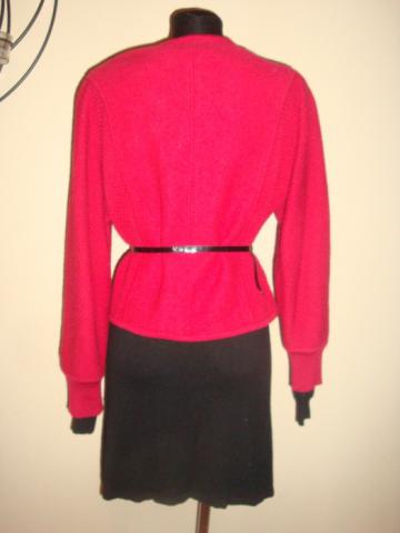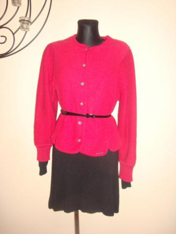 Austriškas, prabangus megztas vilnos švarkelis. Nuostabus modelis, megztas gražiais raštais. Švarkelio ilgis 59 cm, per liemenį 96 cm, kimono rankovėmis. Nors dydis nurodytas 40, pilnai tinka ir 42 ar net 44 dydžiui. Tada švarkelis būtų pilniau išpildytas. 100 proc. vilna