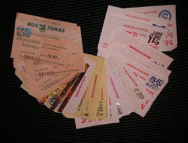 Siauliu miesto menesiniai bilietai vaziuojant autobusu.