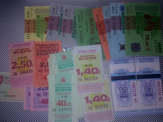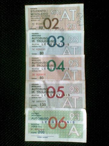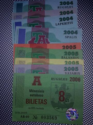 Ivairiu metu, ivairiu nominalu nuolatiniai menesiniai bilietai ir taloneliai.