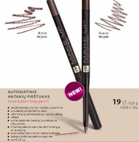 paryškina antakių formą ir optiškai juos tankina » jo sudėtyje yra kosmetinio vaško » užtikrina gilią, patvarią spalvą ir natūralų efektą » netepa » puikiai pasiskirsto, kadangi jo sudėtyje yra ryžių pudros » tinkamas pieštuko kietumas užtikrina lengvą jo naudojimą » automatiškai išstumiama ir slepiama šerdelė » patogus drožtukas pieštuko pagrinde » svoris: 0,31 g