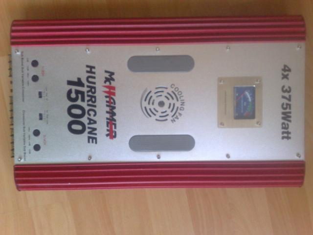 Puikiai veikiantis antros kartos vokiškas McHammer keturių kanalų stiprintuvas Hurricane 1500 – net 1500w maksimalios galios stiprintuvas vos už porą šimtų pinigų! Maksimali galia - 4x 375W / 2x750w tiltu. Palaiko nuo 2 iki 8 omų varžą. RMS Galingumas 4x160W. Mono galingumas tiltu 1200W / 4Ohm/1kHz. Dažnių juosta 1O-40.000Hz ±1 dB, signal to noise 85dB, distortion-factor.