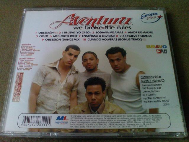 aventura - we broke the rules cd. tracklistas nuotraukoje.