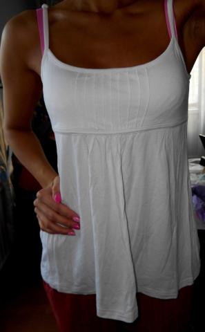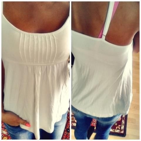 Labai daili, vasariška, balta bliuskutė ant šleikučių, tampri, sleikutes reguliuojasi, Ismatavimai: ilgis 47 cm per krutine 36 cm