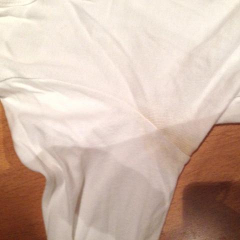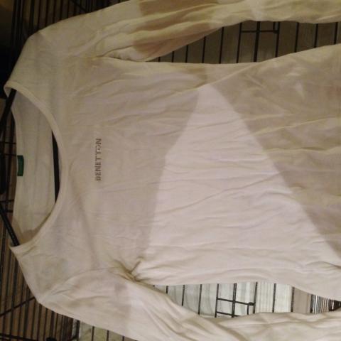 Balta benetton palaidine grazi su svytinciu uzrasu, defektukas pagelte ties pazastim