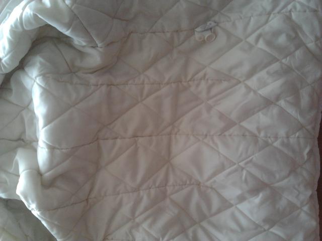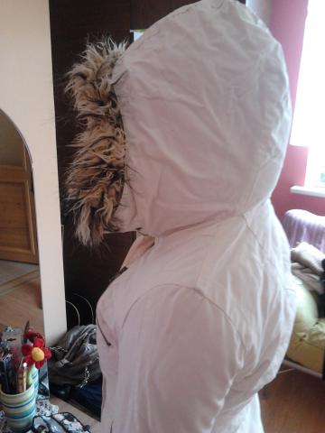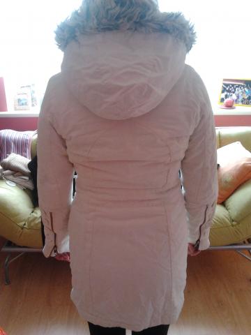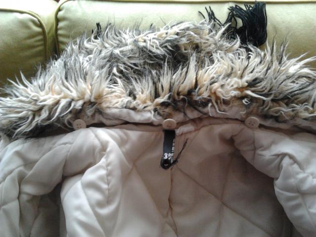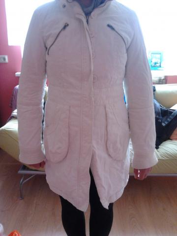 Balta žieminė striukė su kapišonu, kuris nusisega. Dydis 36.