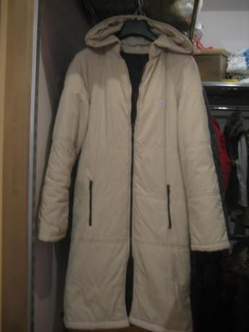 Ilga, dramblio kaulo spalvos striuke su kapisonu. Vidinis pamusalas ir uztrauktukai tamsiai melyni/juodi. Nera defektu. "Imogena" firmos. Dydis s-m.