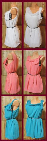 Balta, koralinė ir turkio spalvos suknelės, ilgis - 65cm