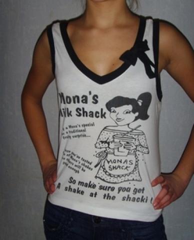 Keistas dydis šios maikutės. Ji tokia trumpesnė, tačiau platesnė. Tai net nežinau kuriam dyžiui labiau tiktų ar S ar M. Galbūt kokiai 12-14 metų apvalainiai mergaitei ;)