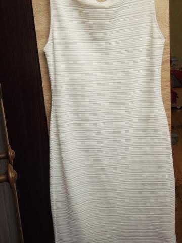Suknelė kelis kartus nešiota, niekur neįplyšusi. Gali būti trūkumas, kad yra dėmė kažkur, bet aš jos nematau.Šiaip suknelė tampri, ir labai patogi. Po apačia yra baltas pamušalas, dėka jo niekas nepersišviečia.