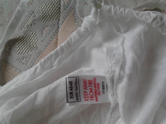 Graži, nauja nėriniuota palaidinė, užsirišanti per kaklą, apačioje susitraukianti raištukais, tiktų apvalesnių formų arba nėštukei. 46-48 dydis. St.Bernard for Dunne stores