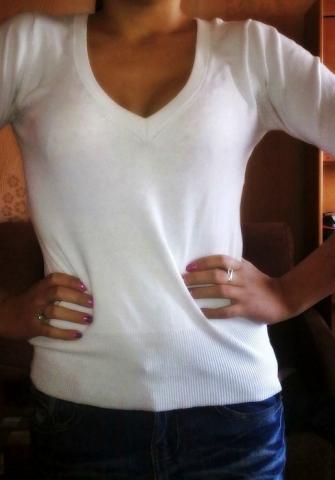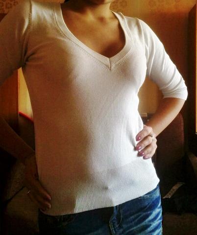 Balta palaidine , trumpom rankovem , jokiu defektu.