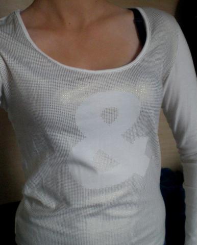 Balta palaidinė su auksinės spalvos taškeliais (tik priekyje). Nešiota vos keletą kartų. Man per didelė. Fotografuota ant S/M.