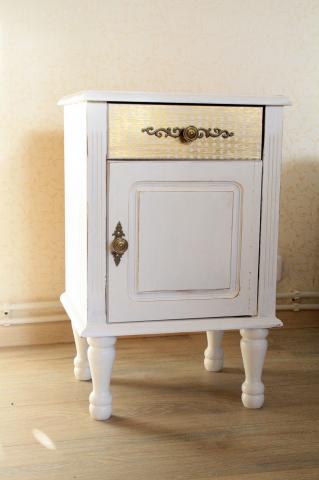 Balta spintelė,medinė.Geros būklės.Su stalčiumi.Talpi.