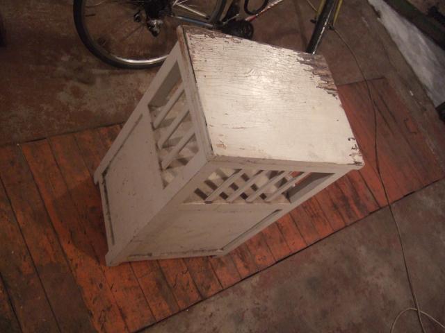 Balta spintelė iš sovietmečio glūdumos. Su durelėmis ir dviem lentynėlėmis viduje. Tinka atsirestauravimui arba naudojimui pagal paskirtį, jei nesvarbi daikto kosmetinė išvaizda. Išmatavimai: aukštis 82 cm, ilgis 52 cm, plotis 40 cm.