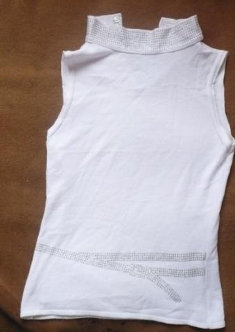 Balta be rankovyciu maikute,puosni su blizguciais , visi nenubyreja ;) nes nesiota beveik , koki 1 kart uzsideta :) Tinka vasarai ar klubui, gan persvieciama.Atsiprasau kad susiglamzius.Dydis S bet manau tiktu ir S/M. Parduodu , nes kaip pačios matot ant manes neypatingai atrodo :D