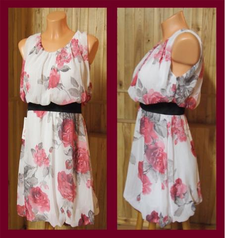 Balta suknelė su rožėmis, Ilgis - 63cm