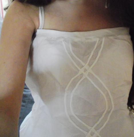 Balta vasarinė bliuskutė su plonomis šleikutėmis.