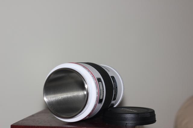 Termosinis puodelis išvaizda prilygsta tikram objektyvui. EF 100mm talpa 350 ml. Kaina 65 LT . Tel 861517717