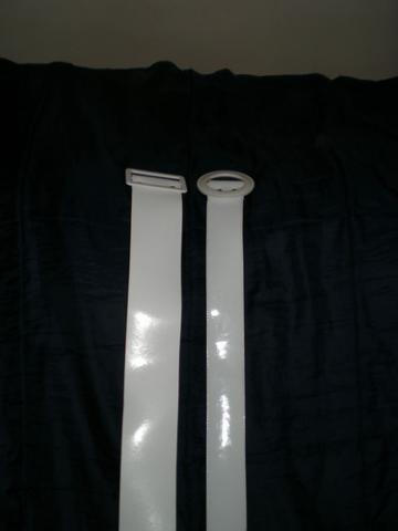 Du lakuoti balti dirziukai, laaabai graziai atrodo ant liemens paltuku, sukneliu, palaidiniu. Platesnio plotis 7,7cm, ilgis 100cm. Kaina 35lt Siauresnio plotis 5.5cm, ilgis 105cm. Kaina 12lt