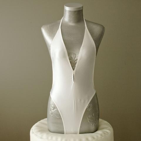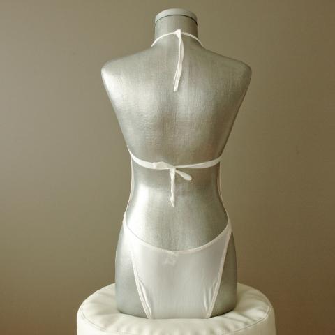Baltas ištisinis maudimukas sušlapęs persimato :) Del patogumo prisiuvau juosteles šonuose, bet galima lengvai jas nuardyti :) Blizgus, gražus ir į akis krintantis modeliukas. Aš kažkaip ir nedrįsau su juo išsimaudyti :) Dydis XXL parašyta, tačiau mano S ir kaip tik, bet jis tamprus ir labai atviras - tai manau labiau universalus dydis tiesiog. Mainyčiau į man patinkančius daiktus. :)