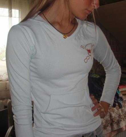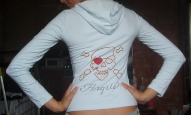 Tuniką, ar šiaip kokia gražią bliuskytę, marškinėlius, maikutę.