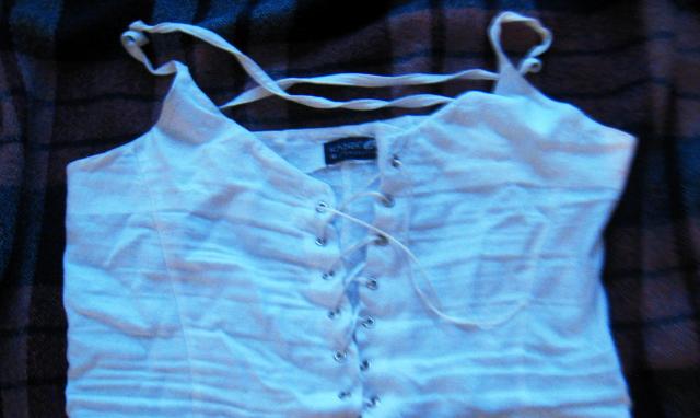 labai graziai pakelia krutine. galima seveti kaip apatini ir kaip virsutini ruba. priekyje varstosi, sone dar yra uztrauktukas. dydis m.