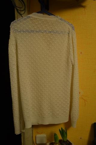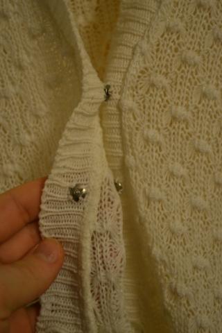 Iš močiutės spintos, nenunešiotas, mielas megztukas :) viršuje susisega divem knopkytem, o toliau sagutės :)