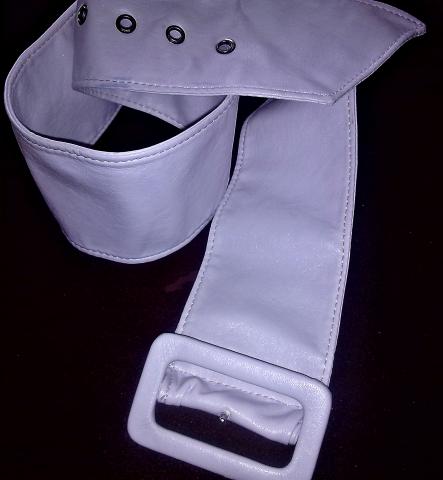 baltos spalvos,visiskai nedevetas ,baltas dirzas ant liemens :) ilgis 97cm , plotis ~8cm