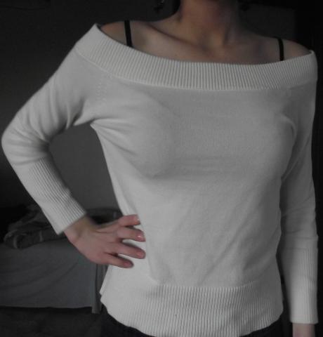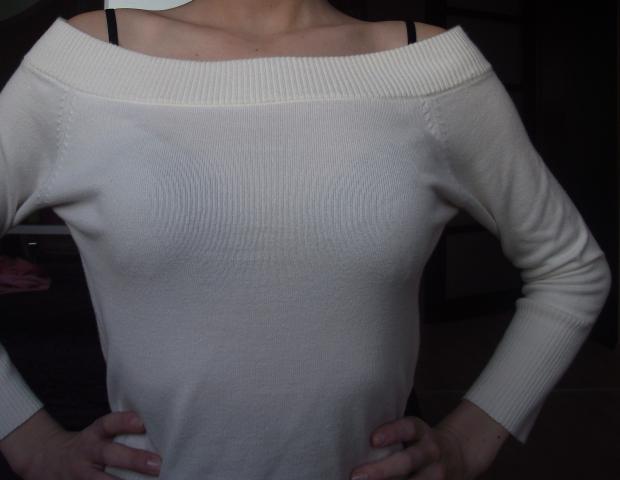 baltas/smėlinės spalvos megztukas,patogus,gražus. tinka tiek paprastomis dienomis,tiek pasipuošti:) švelni medžiaga, suraukimas yra ties rankovių galais, megztinio apačioje ir prie petukų:) petukai gali pūti uždengti su megztuku ir gali būti atviri. tikrai puikiai atrodo:) tinka ir S ir M ir L dydžiui:)