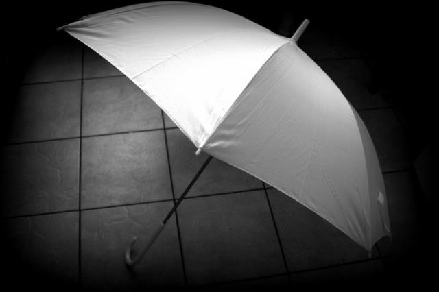 Baltas skėtis. Naudotas tik kartą. Dėl kainos galima derėtis.