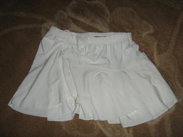 Baltas, plonas sijonukas. Su gumyte, todel tinka ivairiam sudejimui. Trumpas.